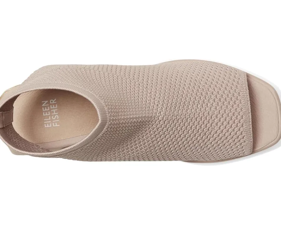- The Eileen Fisher® Gavis sandals are heeled booties with recycled poly knit upper partially made from post-consumer waste. They are made of a foam insole and polyester lining. Chic and comfortable, these heeled sandals are perfect to make your fashion statement.