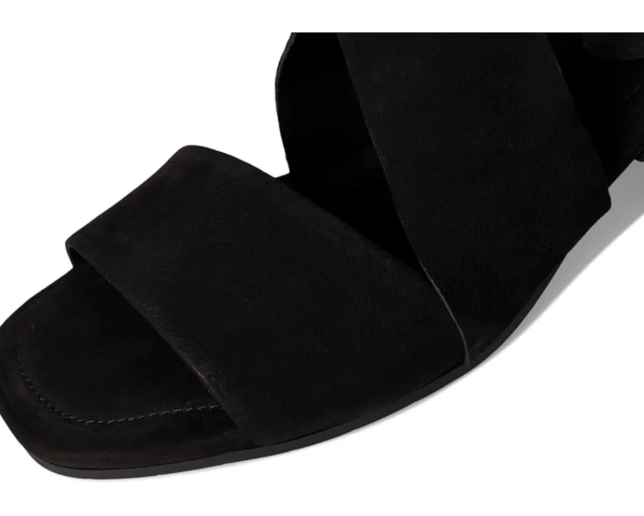 - The Eileen Fisher® Junie is a perfect summer sandal with soft unlined leather straps and a back zipper for easy entry. It has an asymmetrical heel wrapped in leather, for poised elevation.