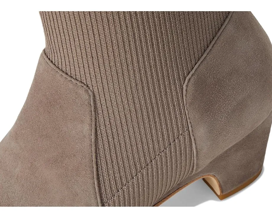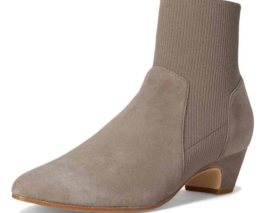 - The Eileen Fisher® Muzy ankle boot is your perfect Fall style. Crafted in high-quality suede and certified recycled poly stretch knit upper made partially from post-consumer waste. The stretch makes the boot easy to pull on, complete with leather lining for comfort and padded foam footbed.