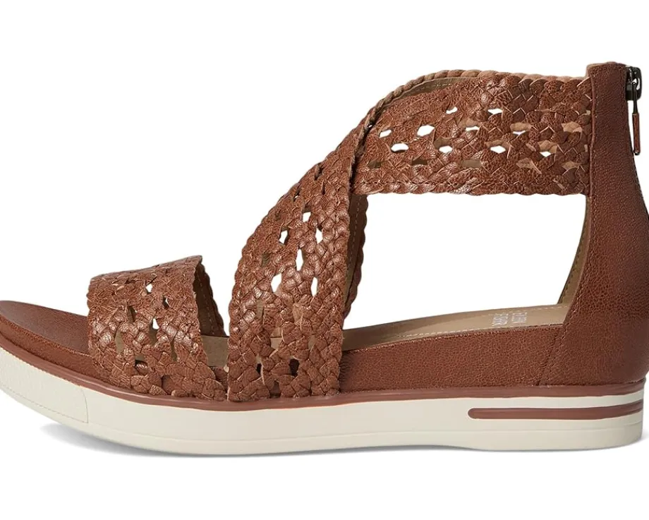 - Slide your feet into the Eileen Fisher® Sport Sandal. The leather upper is chic and super breathable, allowing your foot to be secured with woven-style straps. The back zipper closure makes it easy to pull these on and off, and the molded leather-wrapped footbed and lining cradle your feet with plush comfort. A rubber outsole that’s designed beautifully gives you confident traction and a chic wedge heel provides just enough lift.