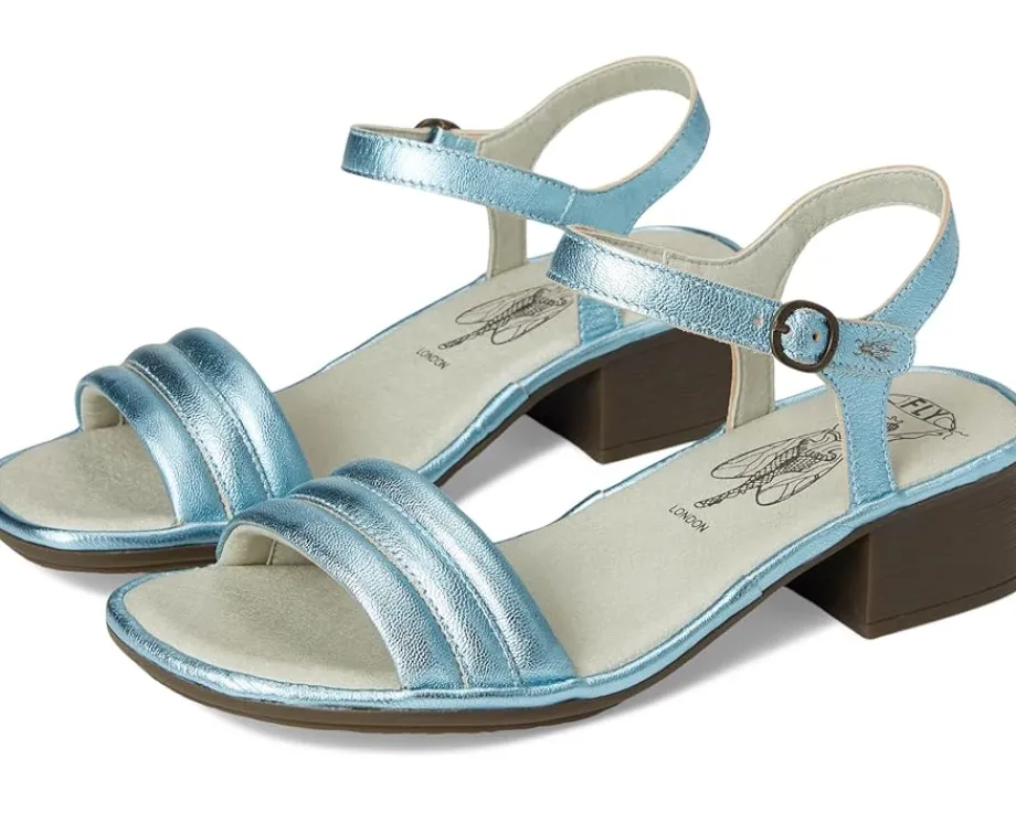 - The stitch-down construction of these FLY LONDON® EIVA567FLY sandals allows for great flexibility. The soft leather uppers are beautiful and the heel-to-toe padded insole, rounded toe shape, and flexible rubber sole add comfort to your feet. The sandal has a polyester lining, foam insole, and thermo rubber outsole.