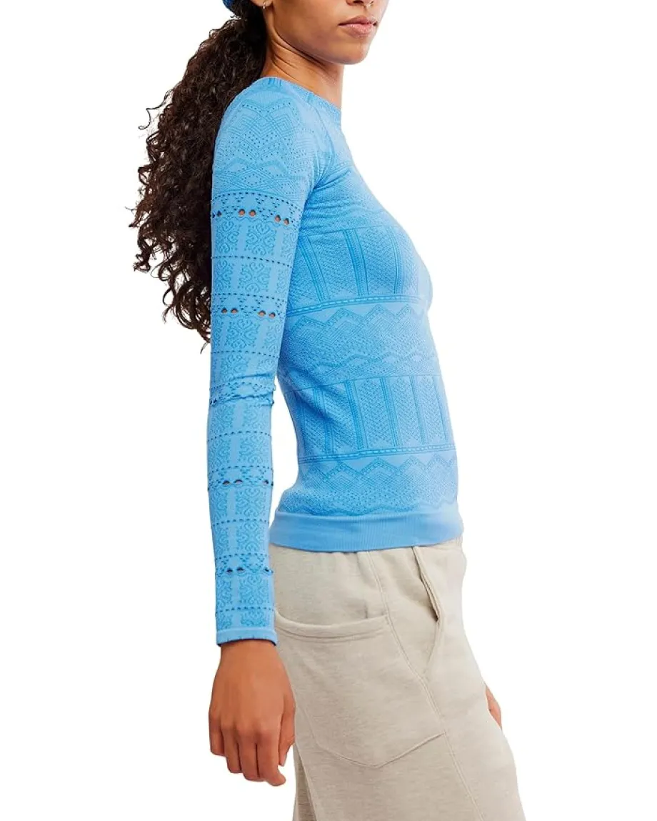 - Move with ease in the eye-catching FP Movementâ„¢ High Road Long Sleeve Layer. Finished with eyelet and jacquard detailing throughout in a fitted silhouette.