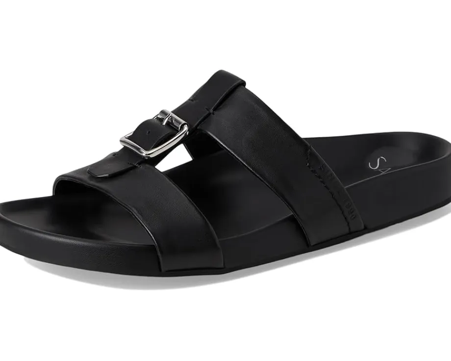- Buckle up to add the perfect amount of attitude to any ensemble choosing the Franco Sarto® Braxton Slides. Crafted with leather or suede upper, faux leather lining, and EVA insole. The slip-on style is adorned with metallic buckle detailing and square toe design.