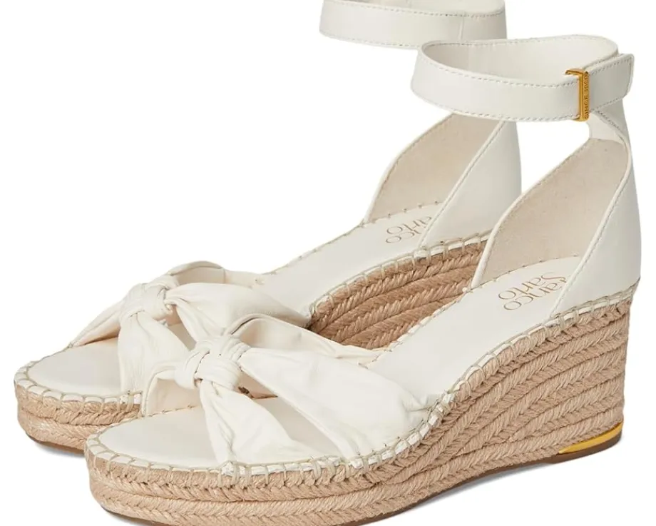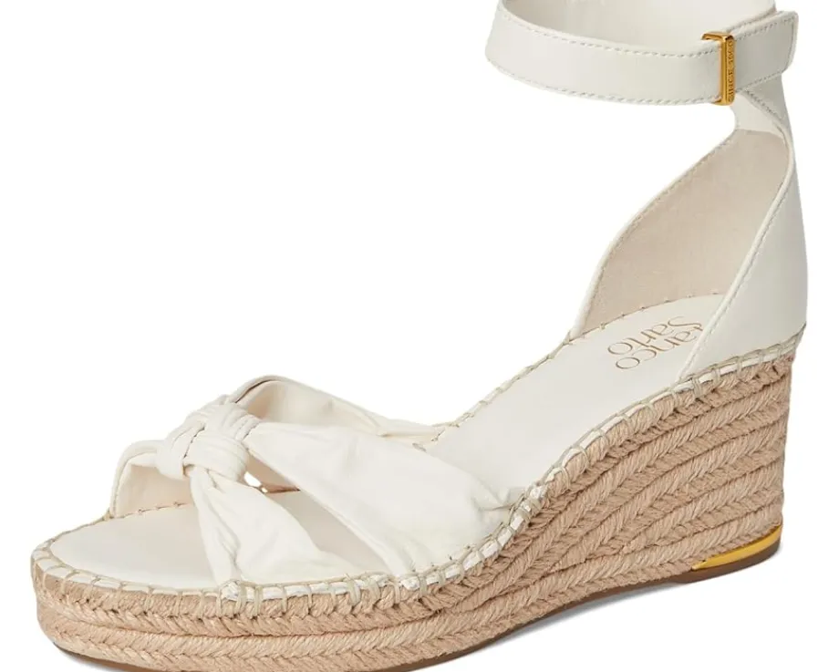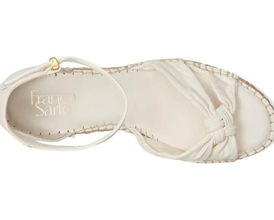 - Elevate your look with the timeless silhouette and trendy aesthetic of the Franco Sarto® Clementine Heels. The open toe heels are crafted with a leather upper with a delightful knotted strap detail at the front and an ankle strap with adjustable hook-and-loop closure. These come with a polyurethane lining, leather insole, synthetic rubber outsole, and a jute-wrapped wedge heel.