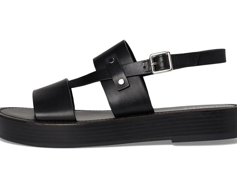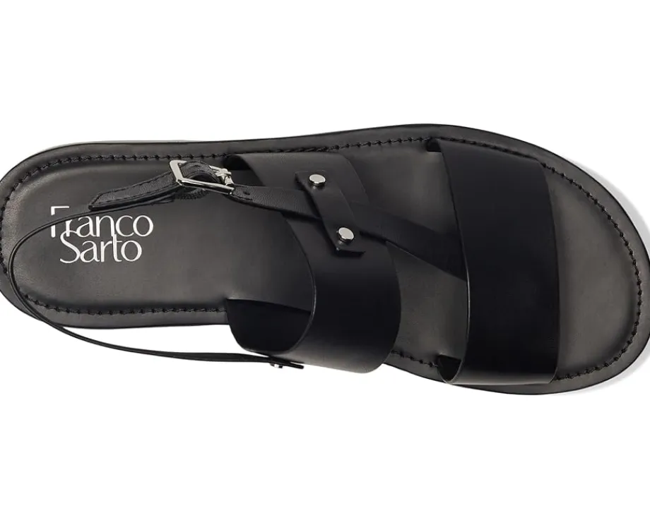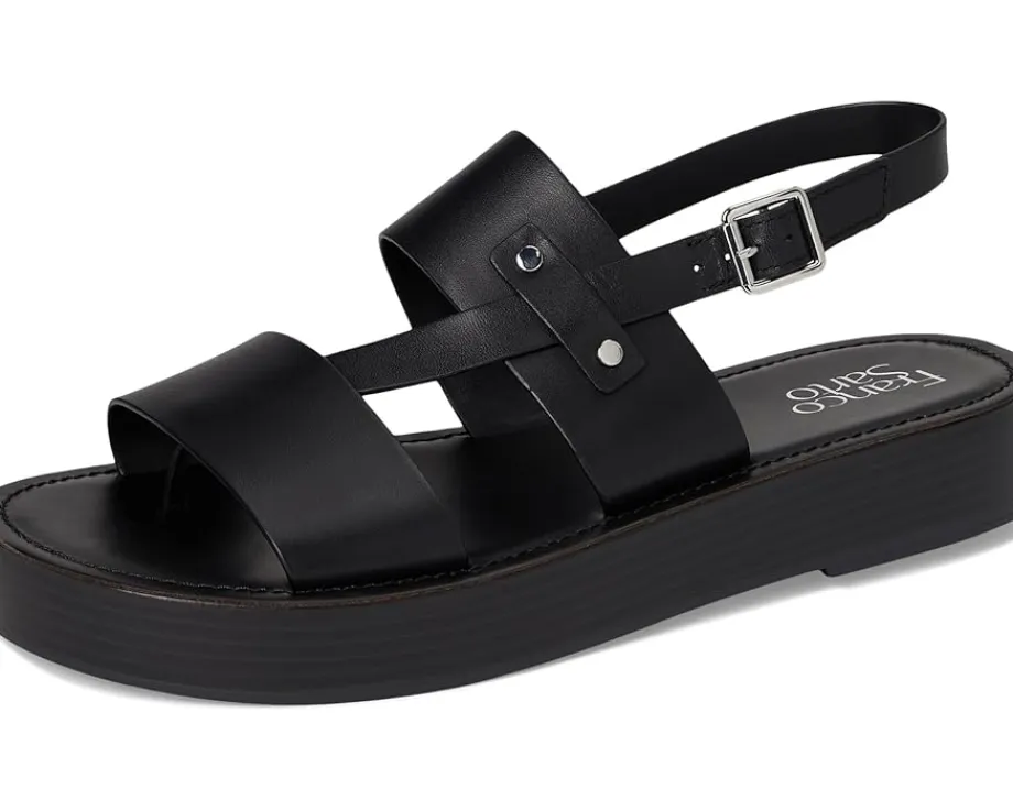 - An eye-catching silhouette and haute hardware detailing combine to create the Franco Sarto® Genova sandals. These bold platform sandals are made of a leather insole and polyurethane lining. The leather upper features an ankle strap with adjustable buckle closure. Easy to slip on and off, these leather sandals are perfect for your outdoor rides and casual outings.