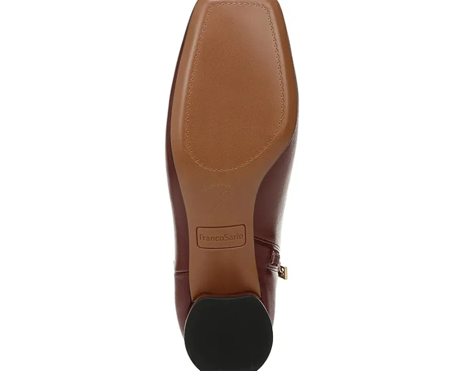 - The Franco Sarto® Noah boots blend a modern silhouette with timeless Italian craftsmanship. These heeled booties are designed with a faux leather upper that is made from partially recycled materials and styled with a metallic ornament. The foam insole and polyurethane lining keep your feet cool and comfortable. These ankle booties feature a zippered side closure for easy on and off. Perfect to wear to work, office, events, and parties, these pull-on boots make a great addition to your footwear collection.