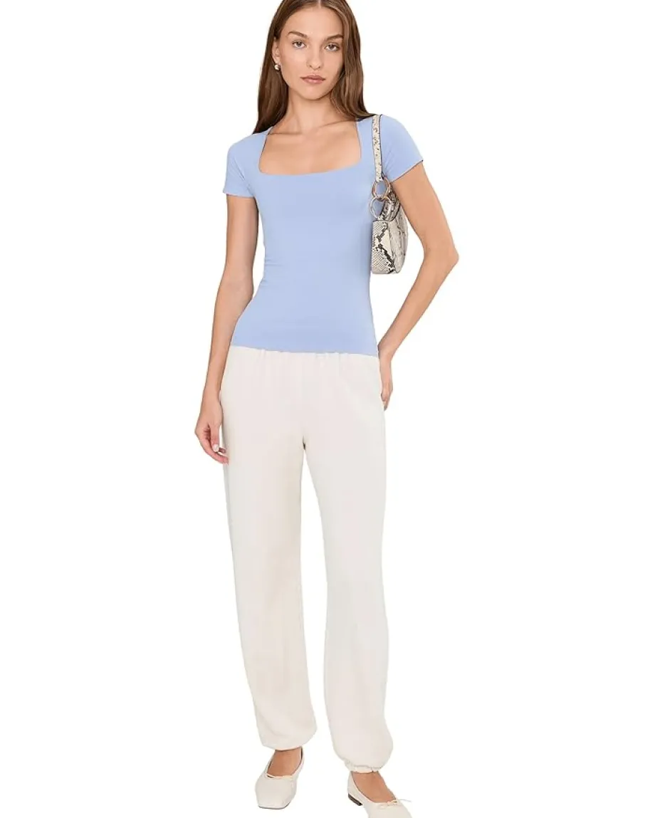 - The Free People™ Sunfade Clean Lines Baby is a seamless essential that blends softness, stretch, and sleek design for everyday wear. It features a slim-fitting silhouette with a square neckline, cap-inspired sleeves, and lining at the bust for added coverage.