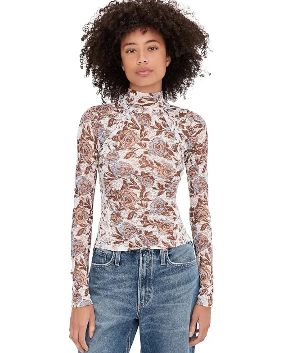 - The Free People™ Lyric Long Sleeve Top is a closet classic in a sheer fabrication and beautiful allover print. The fitted top features a mock neckline, long sleeves, and a straight hem.
