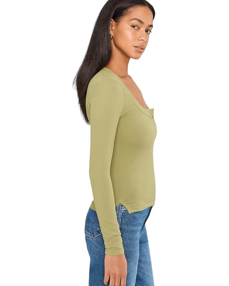 - The Free People™ Wide Awake Layering is designed for effortless layering and all-day comfort. Made from ribbed cotton fabrication, it features a form-fitting silhouette, scoop neckline, long sleeves, and button-front closure with short side slits for added ease and movement.