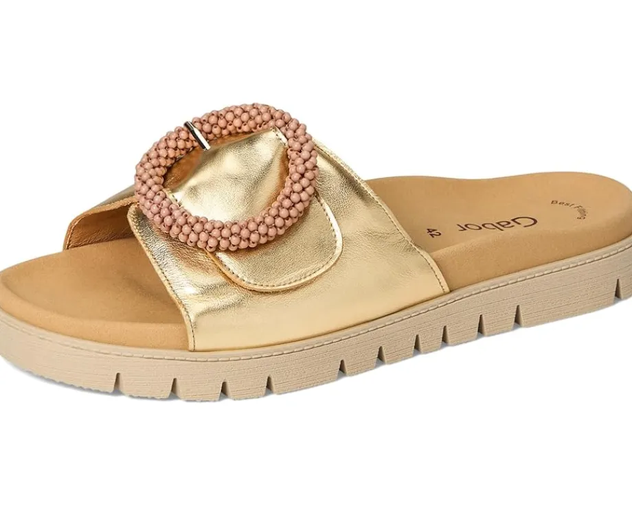- The Gabor® Gabor 63.745 features a subtle heel, offering a sophisticated and comfortable boost in height. A rip tape fastening disguised as a buckle trim rests atop the sandal, providing a secure fit to wear through the day!