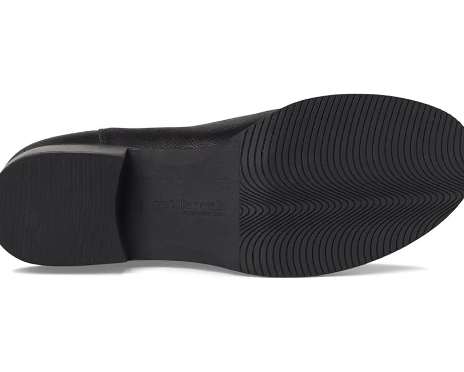 - The Gentle Souls® by Kenneth Cole Bernadette ankle boot is a refined Chelsea silhouette designed for effortless comfort and everyday polish. Crafted from leather upper, it features rib-knit insets that offer flexible ease and a snug fit, along with pull tabs at the front and heel for easy wear. A stacked block heel adds subtle lift, while the multilayered PORON® cushioned footbed with memory foam padding and arch support ensures plush comfort throughout the day. Finished with a rubber outsole for traction and durability, this boot blends modern style with Gentle Souls’ signature ergonomic design.