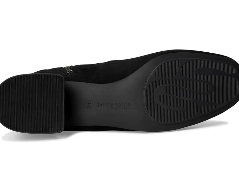 - Waterproof and durable, the Gentle Souls® by Kenneth Cole Emily boots are pull-on stretch ankle booties with an almond toe silhouette and comfort foam insole. The suede upper of these boots features a zippered side closure for easy wear and is lined with leather for added comfort. Add a bold look to your outfits wearing these heeled boots.
