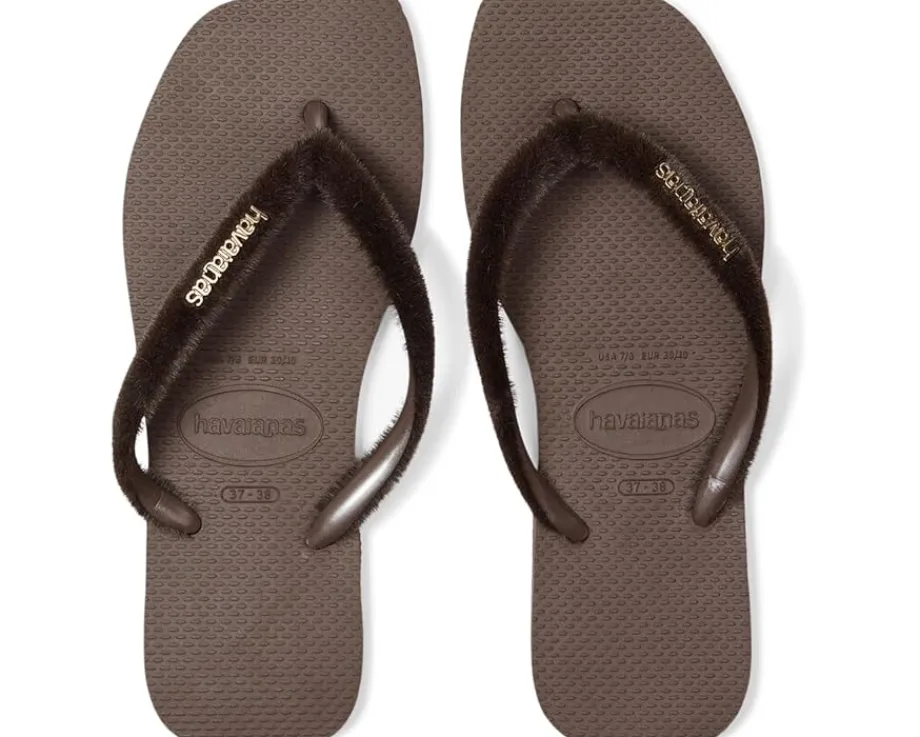 - Experience comfort in the Havaianas® Slim Square Plush Sandals. Featuring a rubber upper, insole, and outsole with natural rubber lining, these sandals are made to deliver the ultimate in everyday wearability. The slip-on style keeps things easy and carefree, while the slim straps bring the signature Havaianas touch you know and love. But here’s the twist: the newly designed squared soles paired with a plush feel offer a modern upgrade to the classic silhouette, giving your look a fresh edge.