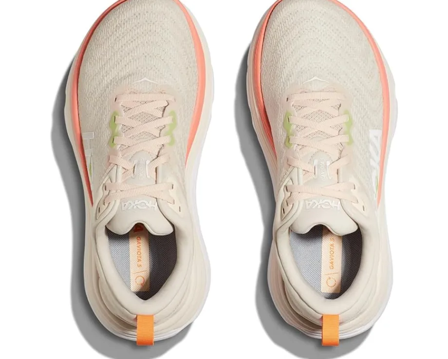 - Make life easier than ever by wearing Hoka® Gaviota 5 sneakers. The shoes feature a rounded toe and lace closure with heel pull-tabs. The textile upper and lining ensure high breathability. The shoes feature a removable OrthoLite footbed and a multi-directional lug design to let you walk with unstoppable speed.