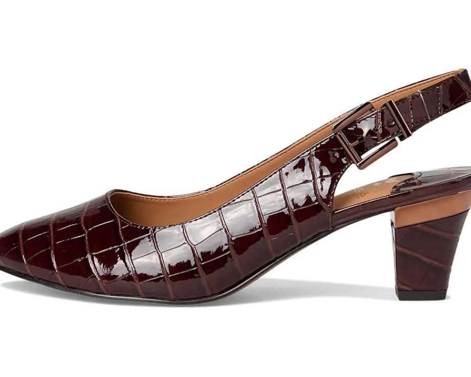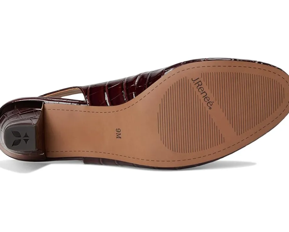- The J. Renee® Malree is a year-round staple that blends classic sophistication with comfort-focused design. Featuring a croco-embossed almond toe, it’s crafted with a polyurethane upper and lining, and set on a block heel for subtle elevation. The buckle adjustable slingback strap closure ensures a secure fit, while the memory foam + latex insole provides cushioned support for all-day wear.