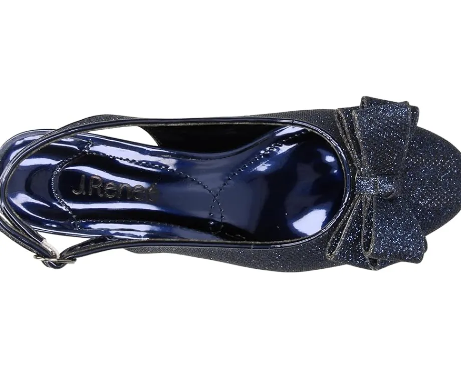 - Glittering textile upper with slingback design and huge bow-tie accent on the foot.