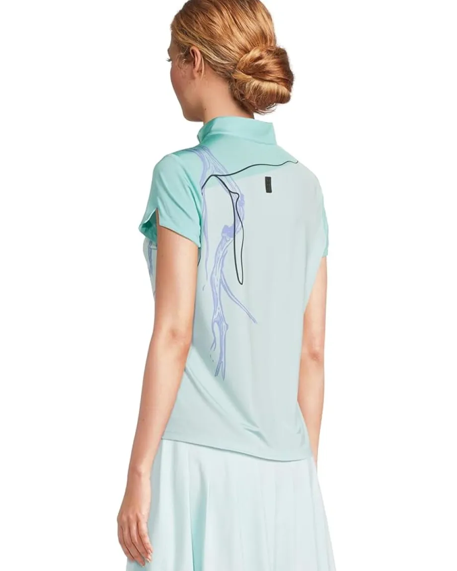 - The Jamie Sadock® Strike Print Short Sleeve Top is a literal work of art designed, refined, and produced with the intention of being nothing like anything else on the market. Made using Cooltrex® Performance fabric,this top features collared neckline, short sleeves, classic silhouettes infused with distinct details that set you a cut above others. Look Good Feel Good Play Good.
