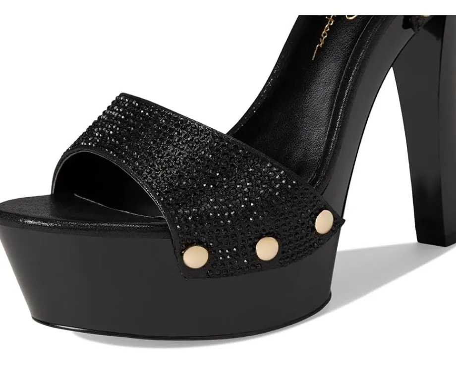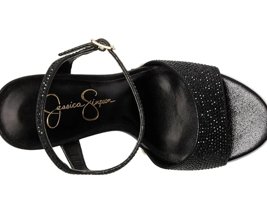 - Hit the floor wearing the classy Jessica Simpson™ Calenta. Crafted from faux leather upper, polyester lining, and insole, this pair of sandals features open round toe, cone heel, ankle strap buckled closure, and brand detailing on the footbed.