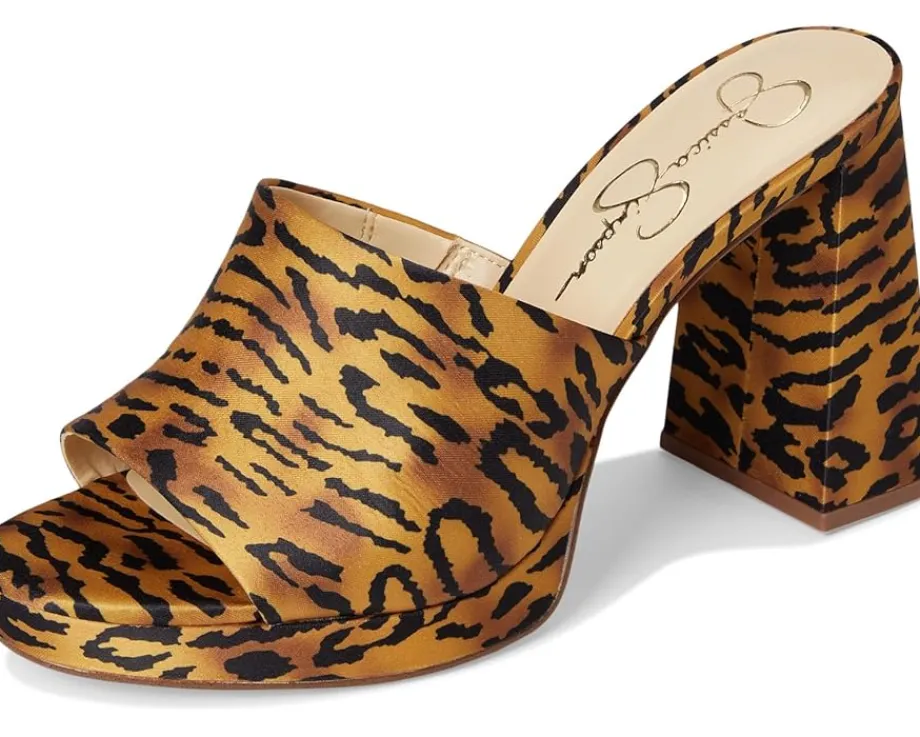 - A sculpted block heel elevates the classic look of Jessica Simpson™ Kameena Mule Platform Sandals. This slip-on footwear is designed with a faux leather upper and peep toe silhouette.