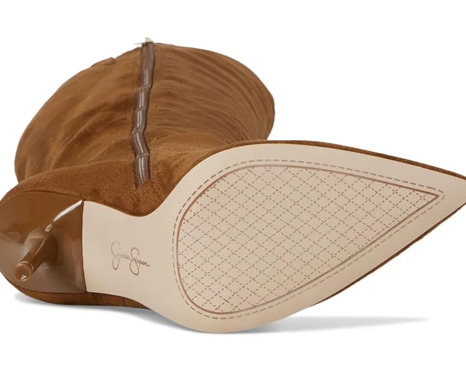 - The Jessica Simpson™ Lovienn Pointed Toe Knee Boots feature a sharp pointed toe, a stiletto heel, and a zippered side closure for wearable ease. Crafted from faux leather upper, the Lovienn boot blends glam and edge.