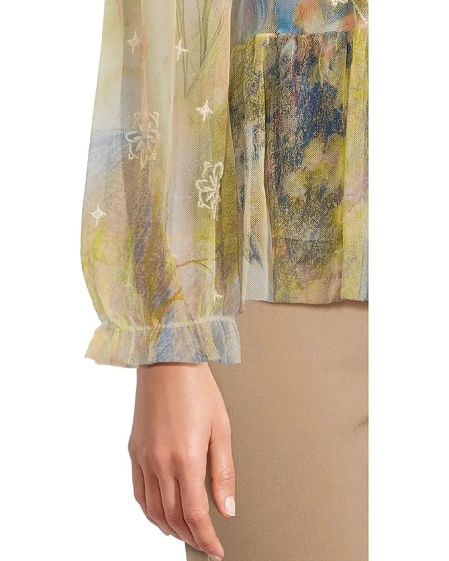 - Boho-chic vibes meet effortless elegance in the Johnny Was® Charlot Mesh Blouse (with slip), a dreamy piece designed to turn everyday dressing into an art form. Crafted with a lightweight mesh overlay and a slip for easy wear, this blouse captures attention with its vibrant printed design that feels both timeless and on-trend. The round neckline with button-front closure adds a delicate touch, while the long sleeves with elasticized cuffs bring in a hint of romantic flair. A charming ruffled hem completes the look, creating graceful movement with every step. Designed as a pull-on style, it offers convenience without compromising sophistication, making it a perfect blend of comfort and style.