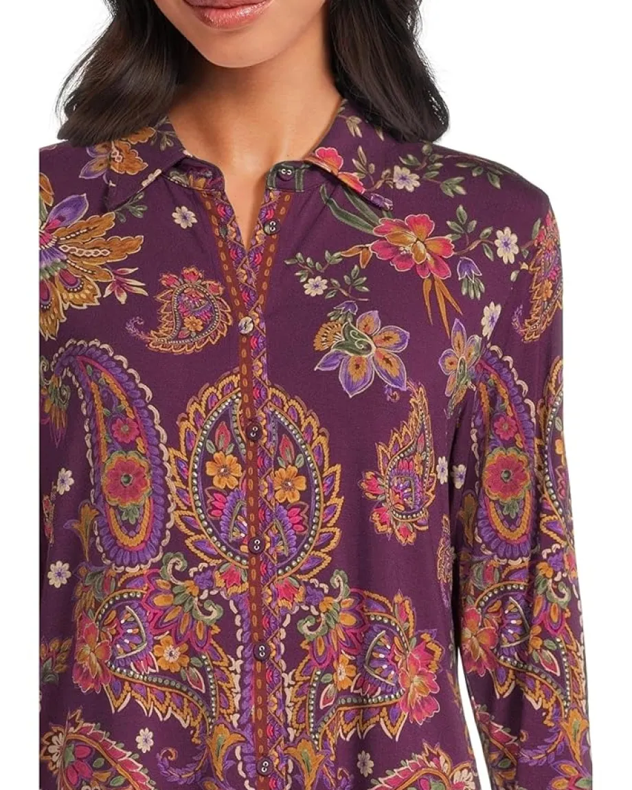 - Breathe easy wearing the stylish Johnny Was® The Janie Favorite Button Front Shirt. Featuring bold paisley pattern, and vibrant colors, this soft and lightweight shirt is adorned with collared neckline, long sleeves with button cuffs, button front closure for a cohesive look. Pair with crisp white pants and a bold shoe for a night out.