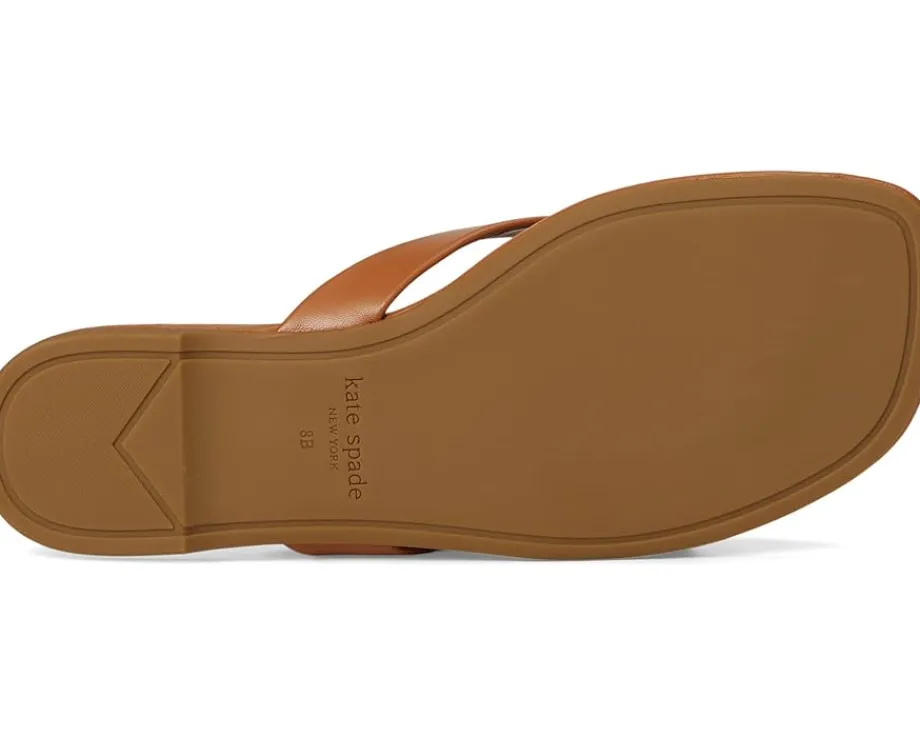 - Take every step forward with lasting comfort wearing Kate Spade New York® Spade Flower Flip Flop Sandal. The slip-on style sandals feature a glossy patent leather upper, leather lining, and an open-toe design with a toe-post closure detailed with a spade flower motif.