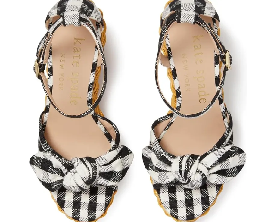 - Step into spring with Kate Spade New York® Tianna Wicker, where chic meets comfort. Elevate your style with these suede wedges, boasting a wicker-wrapped heel that adds a touch of whimsy to picnics or patio parties. The backstrap closure ensures a secure fit, while the leather insole guarantees all-day comfort for every step.