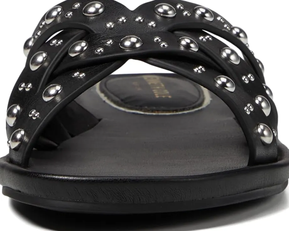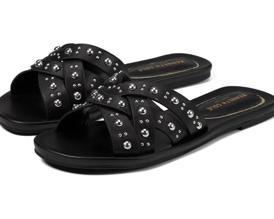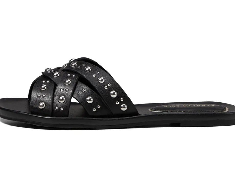 - Step out in trendsetting fashion wearing the Kenneth Cole New York® Jula Studs sandals. The chic woven cross band detail with studs adds a touch of edgy sophistication to these sandals, while the faux leather upper and lining provide durability and style. Slip into the padded leather insole for a comfortable and stylish look.