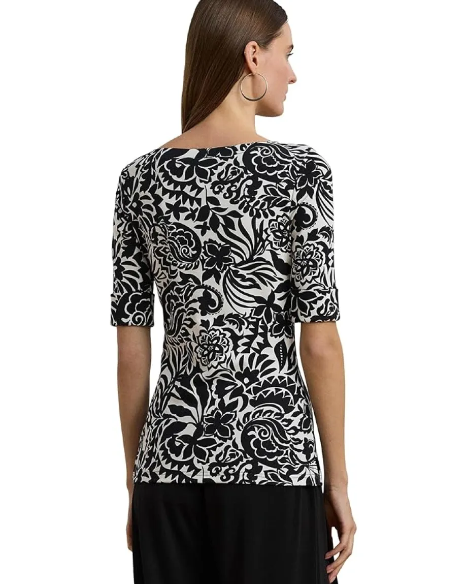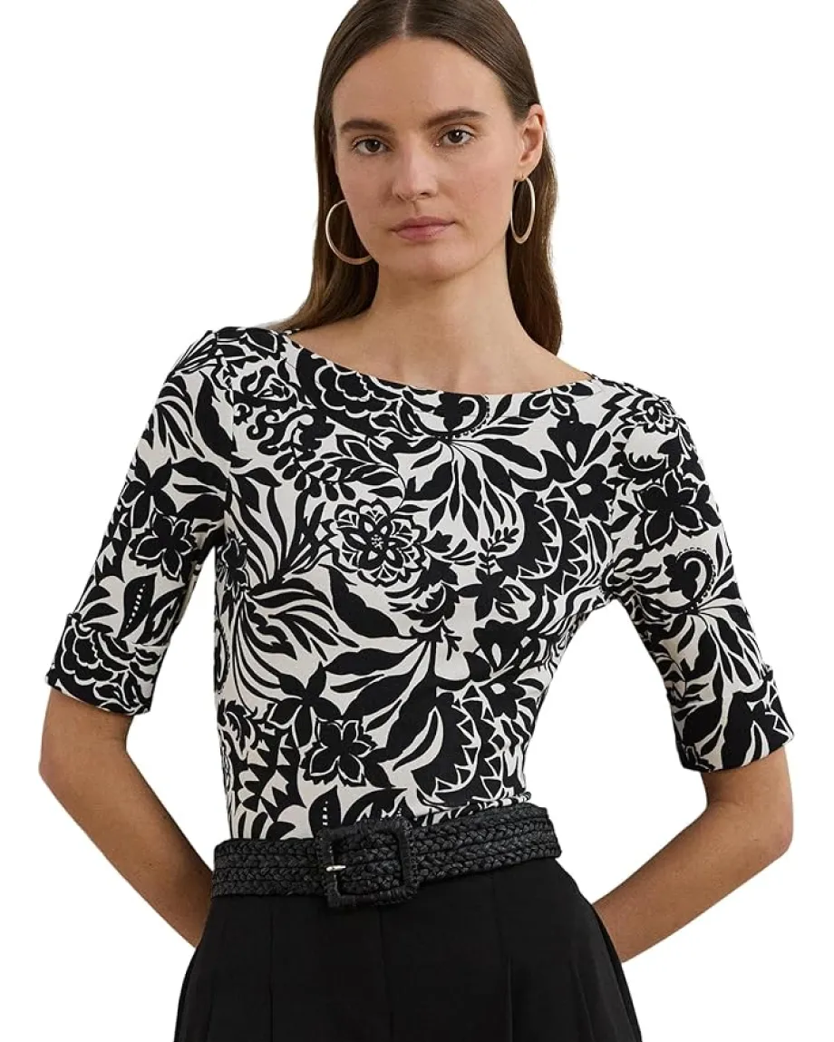 - Take it easy and keep it cool wearing the LAUREN Ralph Lauren® Floral Stretch Cotton Boatneck Tee.