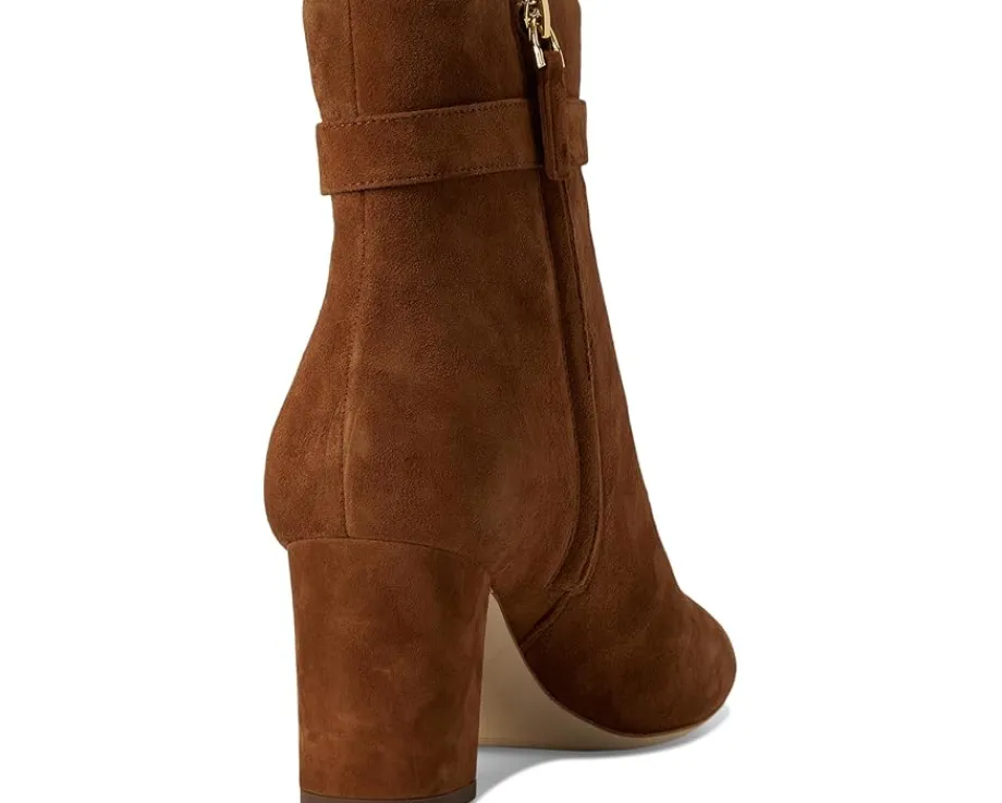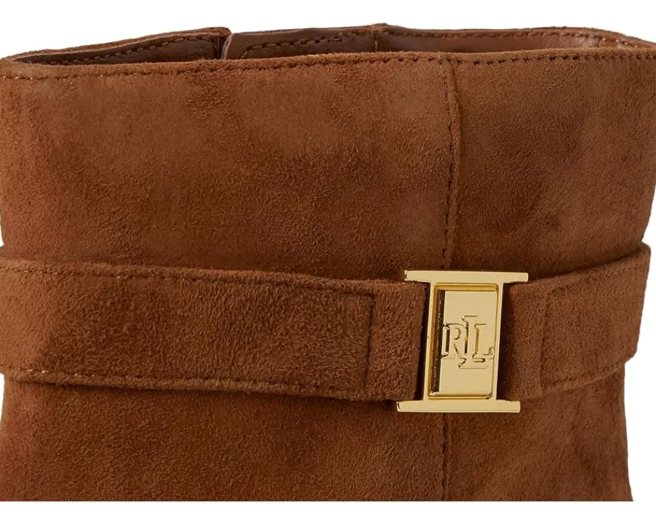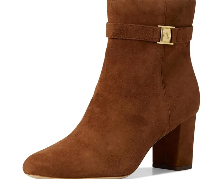 - Embodying Lauren Ralph Lauren’s® elegant character, the Kellie Suede Bootie Heel features a velvety suede upper set on a block heel. An ankle strap embellished with an “LRL” brass-finished plaque completes the look. These chic booties feature an almond-shaped toe and a padded insole for all-day comfort.