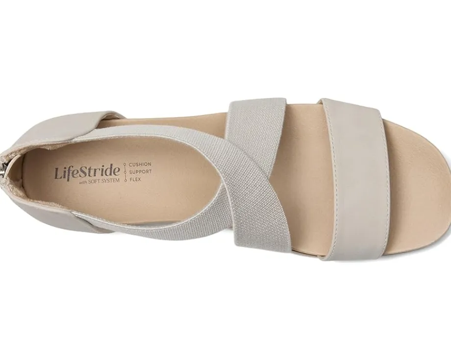 - Feel light and breezy in these sporty LifeStride® Giselle platform sandals. With faux leather upper, a soft square open toe, and stretch gore straps, they offer both style and flexibility. The back zipper makes them easy to slip on and off, and their lightweight design ensures all-day comfort. The Trusted Soft System® comfort technology provides unmatched cushioning and support. The traction sole adds stability, and the just right height platform wedge heel offers a perfect lift.