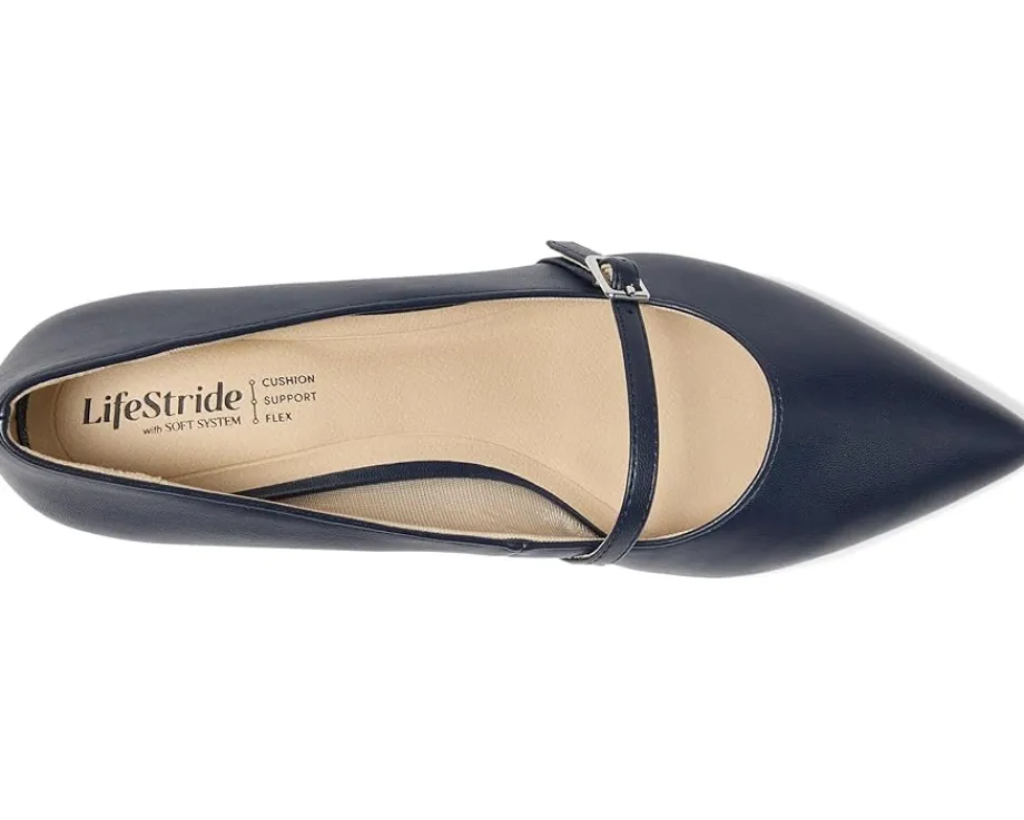 - Chic and comfortable, get in on the trend wearing the LifeStride® Madelyn pumps. The faux leather upper of these shoes has a softly pointed toe silhouette, Mary Jane strap with buckle detail, and modern sculpted kitten heels. These heeled pumps are crafted with a foam insole and partially recycled faux leather lining. The soft system comfort package provides all-day support, flex, and cushioning. Get ready for a formal event or party wearing these pump shoes.