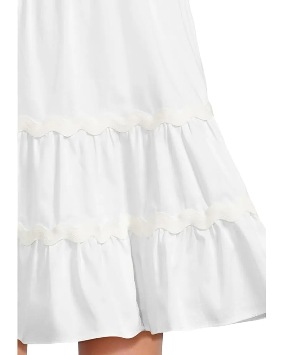 - Everybody will be in awe of your casual yet chic style when you dress up in the Lilly Pulitzer® Angelynn Stretch Dress. The fit-and-flare dress features an apron neckline, bodice cups, tiered skirt, side seam pockets, and a ric rac trim. It is intended to hit above the knees.
