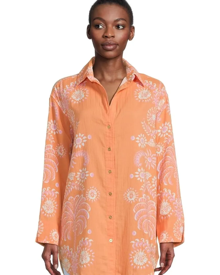 - Breezy, bold, and beautiful: The Lilly Pulitzer® Kwitney Long-Sleeve Cover-Up. This relaxed-fit cover-up is easy to layer for an endless variety of looks due to its classic collared neckline and button-front closure. The light fabric falls beautifully over the skin to keep you cool and comfortable while lounging at the pool or walking the shore. Its signature floral print makes it great for a day at the beach or a brunch by the water.