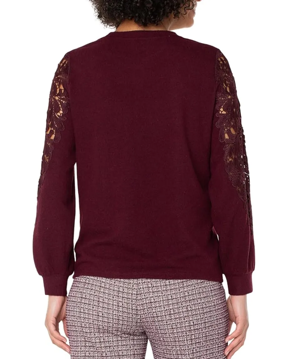 - Redefine elegance wearing the Liverpoolâ„¢ Los Angeles Long Sleeve Crew Neck Lace Inset Knit Top. This pull-on style top blends comfort and a femininity with lace on the long sleeves that adds charm to any outfit. Soft and easy to wear, it’s a versatile staple that moves seamlessly between seasons – and looks good in every color.