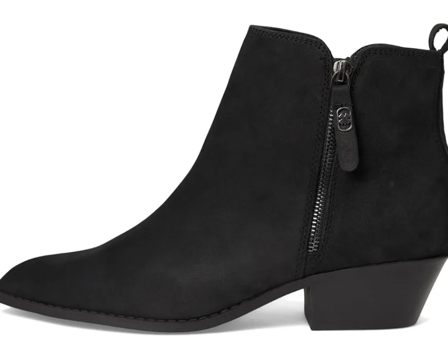 - The Ailein boot from Lucky Brand® is an effortless option for any fall look. This bootie features a pointed toe design, a stack heel, and a zippered side closure. Designed with a sleek leather upper and polyurethane lining, this bootie blends comfort and style with ease.