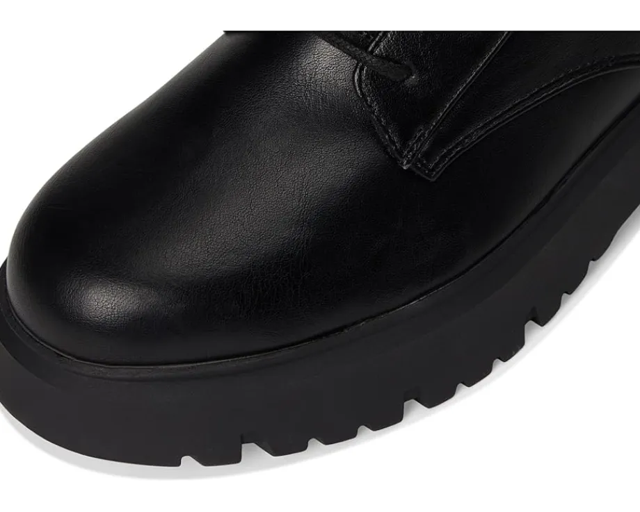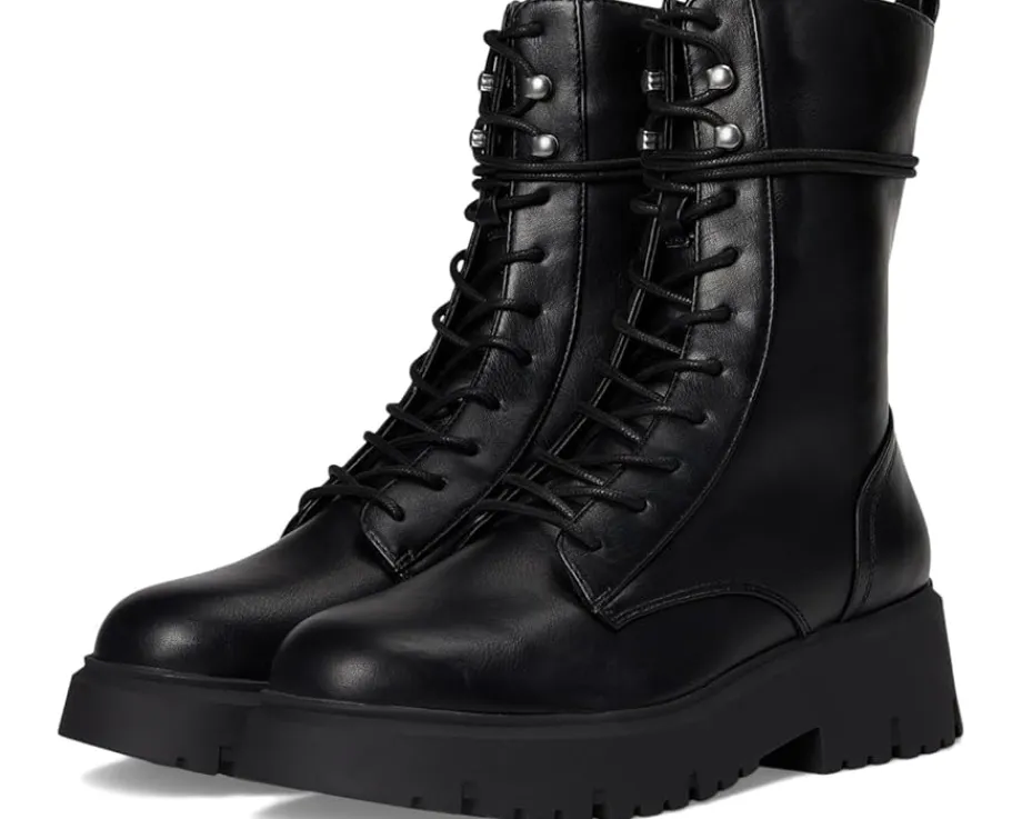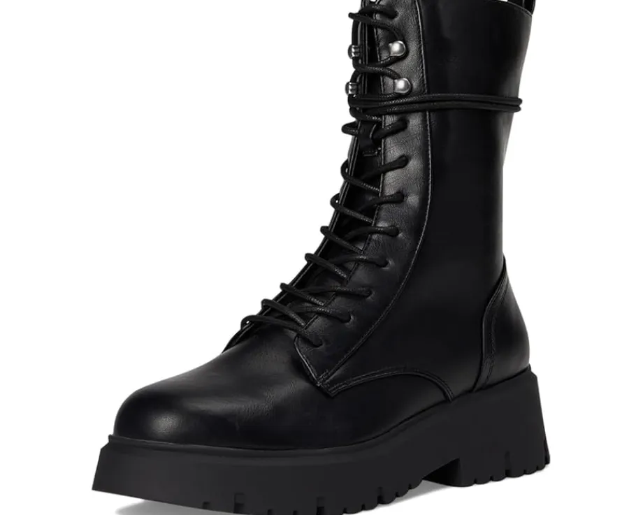 - The Madden Girl Maisey combat boot is cool girl approved with its lug sole. Crafted from a faux leather upper, these boots offer a lace-up closure in a round toe silhouette, side zipper, faux leather lining, and a faux leather insole.