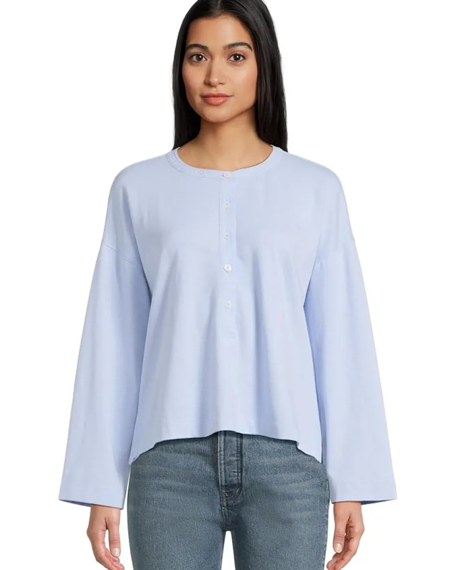 - Add a touch of refinement to your classic look wearing Madewell® Bombay Long Sleeve Henley Top. The pull-on style top features a Henley neck, a half-button closure, long sleeves, and straight hem with side splits.