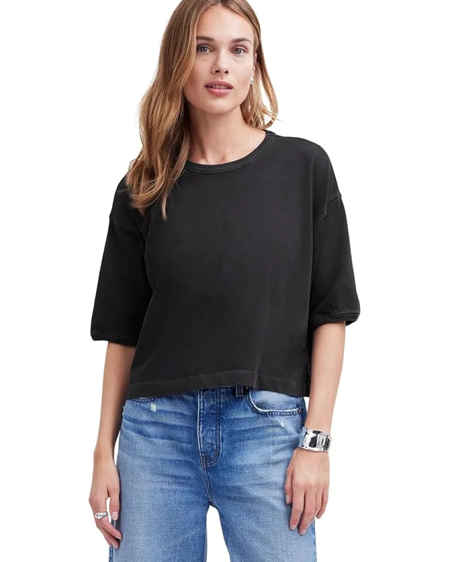 - Meet your new favorite basic: the Madewell® Esther Side Slit Tee. Designed with a boxy fit for that effortlessly cool look, it features a ribbed crew neckline, short sleeves with a drop-shoulder design, and ribbed cuffs for a touch of structure. Side slits add easy movement and make it the perfect throw-on-and-go tee.