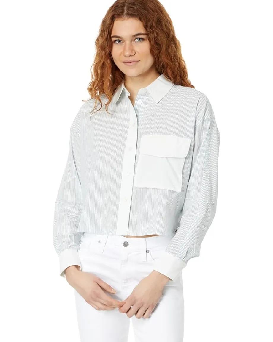 - Featuring a vertical striped print all over, get ready for work or a business meeting by wearing the Madewell® Flap-Pocket Crop Button-Up Shirt in Poplin. The breathable and lightweight cotton fabric of the shirt takes your comfort to the next level. This striped shirt features a front buttoned closure that offers a secure fit. Flaunt your great style and fashion sense by wearing this button-down shirt.