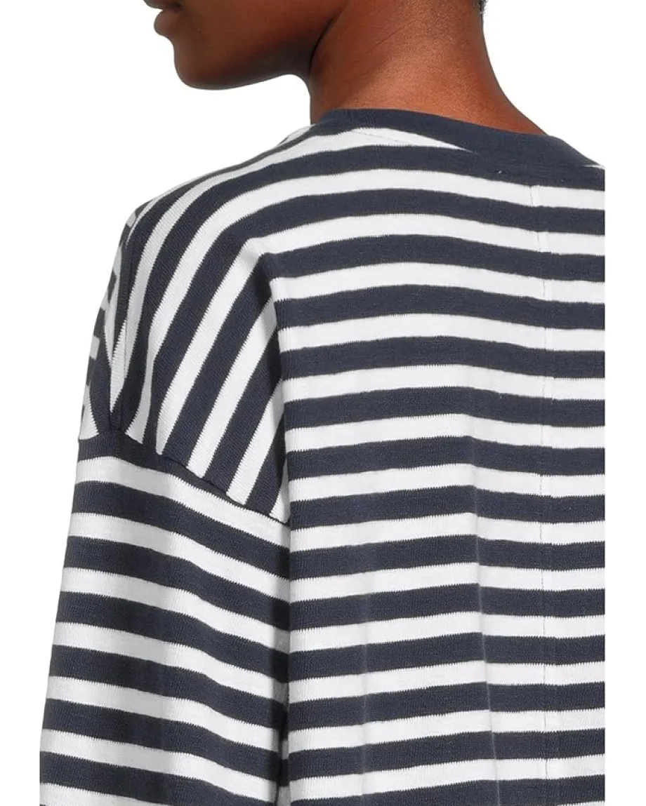 - Adventure-ready, the Madewell®Long Sleeve Easy Tee is an all-day comfy piece. It features a rib-knit crew neckline with an allover stripe print pattern and trendy drop shoulder long sleeves.