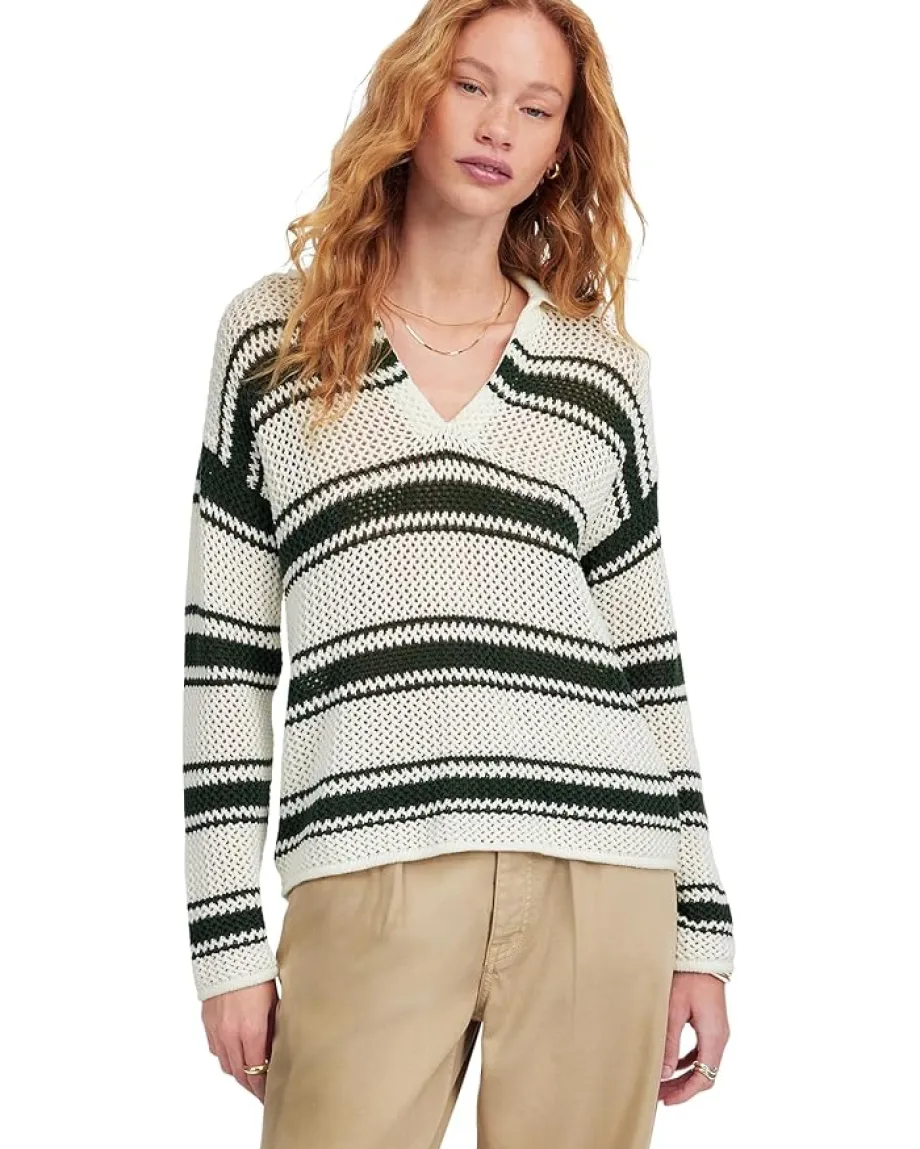 - The Madewell® Stripe Madeleine Open Stitch Long Sleeve Polo boasts an open-stitch design, offering a unique texture and a lightweight feel. The long sleeves and classic polo collar add a touch of sophistication, while the striped pattern brings a modern flair.