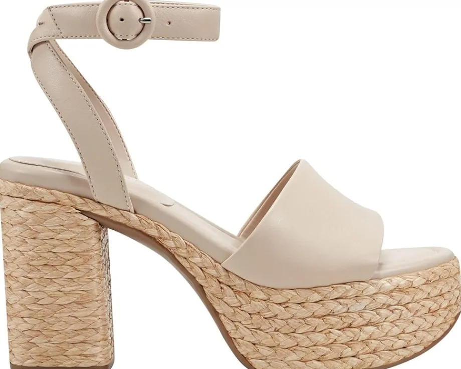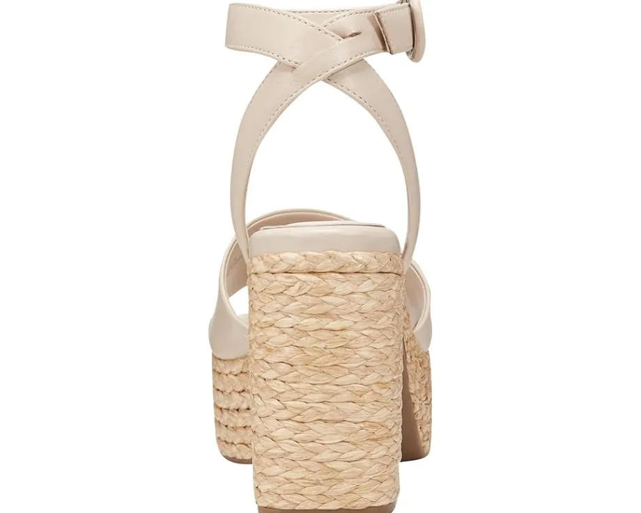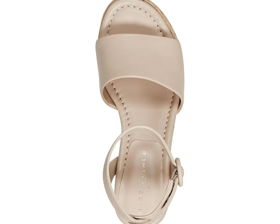 - Bring in the sleekness with sculpted flair wearing Marc Fisher LTD™ Palyca Sandals. The high-block heel footwear features woven construction with leather upper and buckled ankle strap closure.