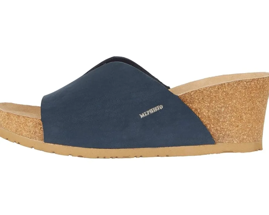 - Prepare for the new season with the Mephisto® Lisane wedge sandal featuring a wide strap, cork heel, and a leather upper.
