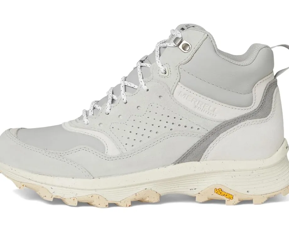 - The Merrell® Speed Solo Mxd Mid Waterproof shoes feature a waterproof membrane to keep your feet dry while allowing moisture to escape, ensuring comfort during wet conditions. The durable leather and mesh upper provide both support and breathability, while the Vibram® outsole offers excellent grip on various terrains.