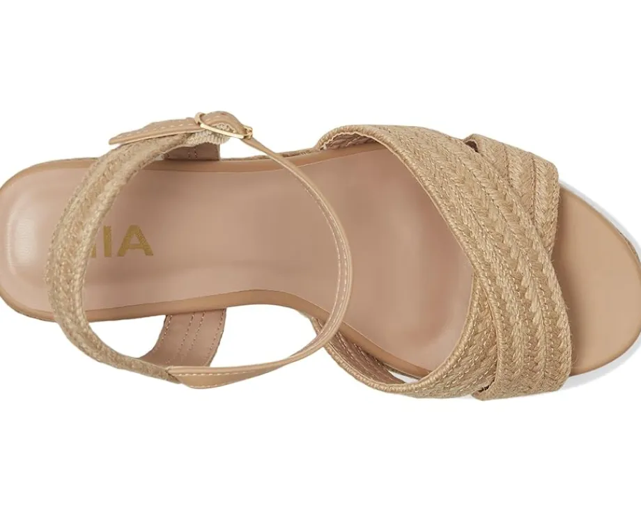 - Stride with uncompromised flair and ultimate comfort wearing the MIA™ Alouette Sandals. The espadrille footwear features intricately braided plastic upper with backstrap and buckled ankle strap closure.