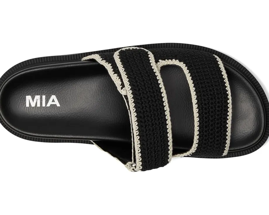 - Slip into ease and trend with MIA™ GABRI. This playful sandal is crafted with a chic crochet faux leather upper, double hook-and-loop straps, faux leather lining, and our MIA™ signature faux leather footbed for maximum comfort. The open round-toe silhouette with easy slip-on style allows quick on/off.