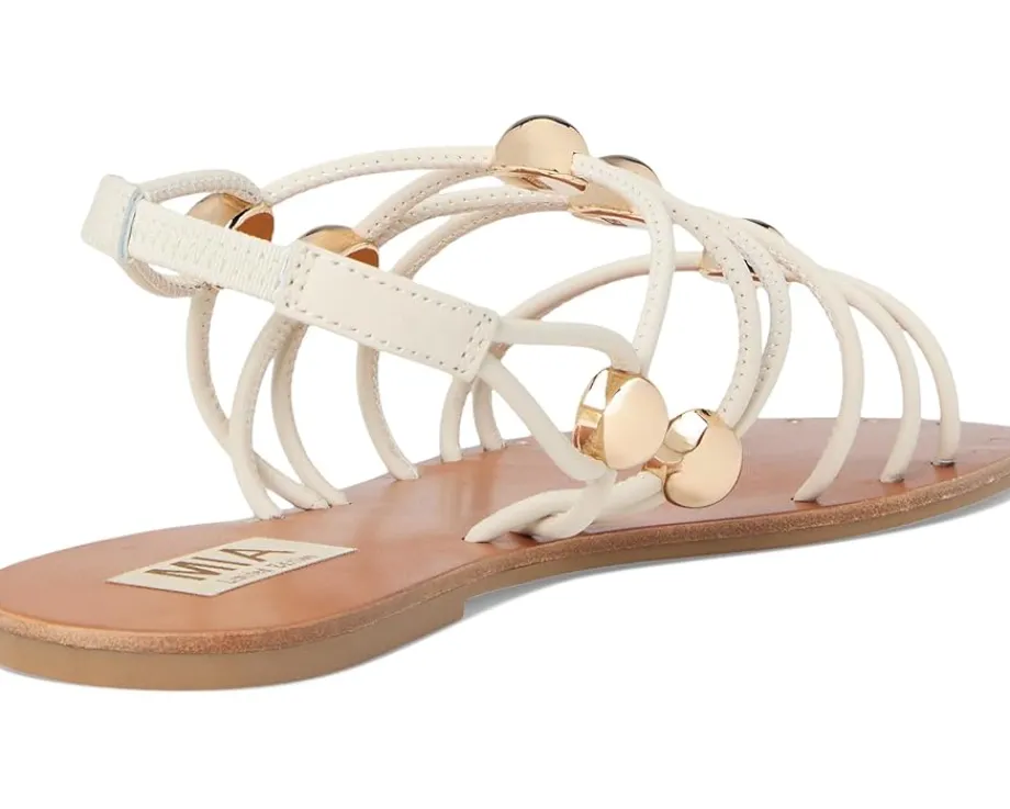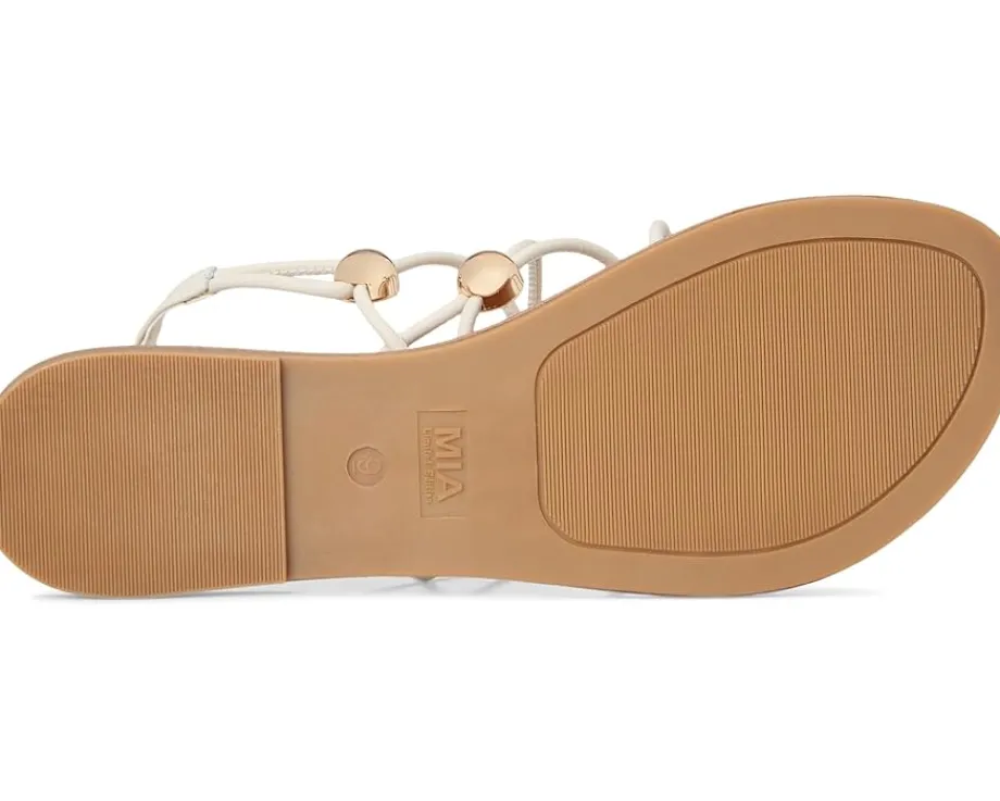 - Give your feet a comfort retreat with the MIA™ MLE-Teagen flat sandal. The pull-on footwear features leather upper construction with faux leather lining and anatomical insole.