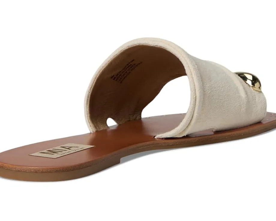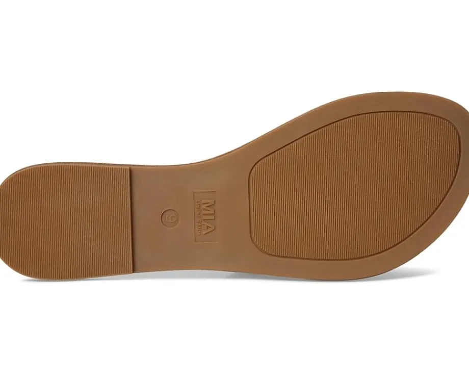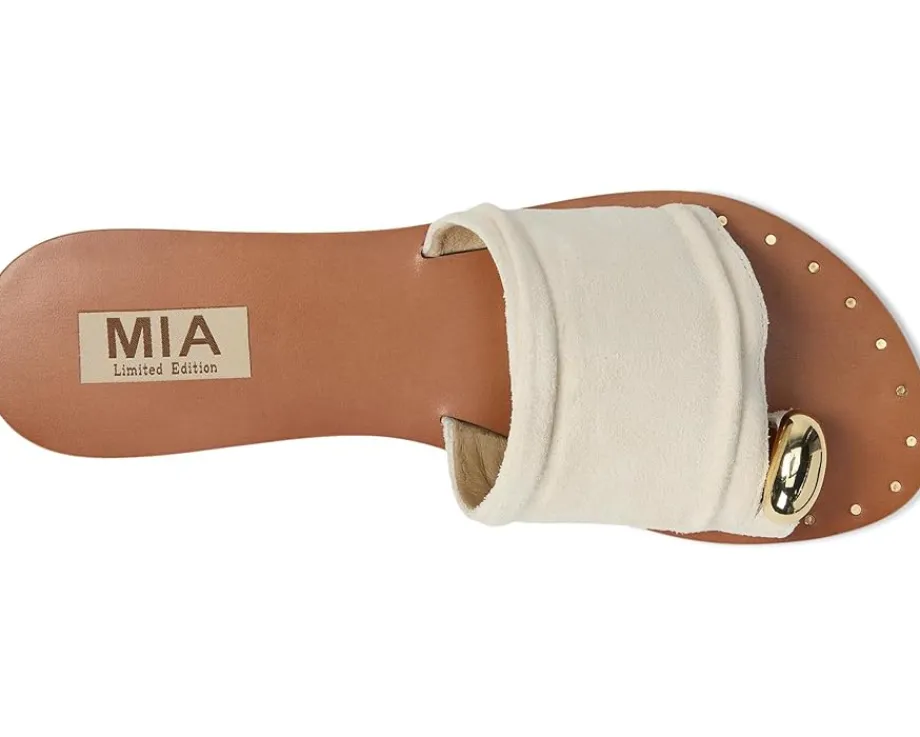 - Liven up your laidback look in the MIA™ MLE-Tiffani sandal. Featuring a genuine suede strap, flexible faux leather lining, nail head details, and a toe ring accent for a touch of glam.
